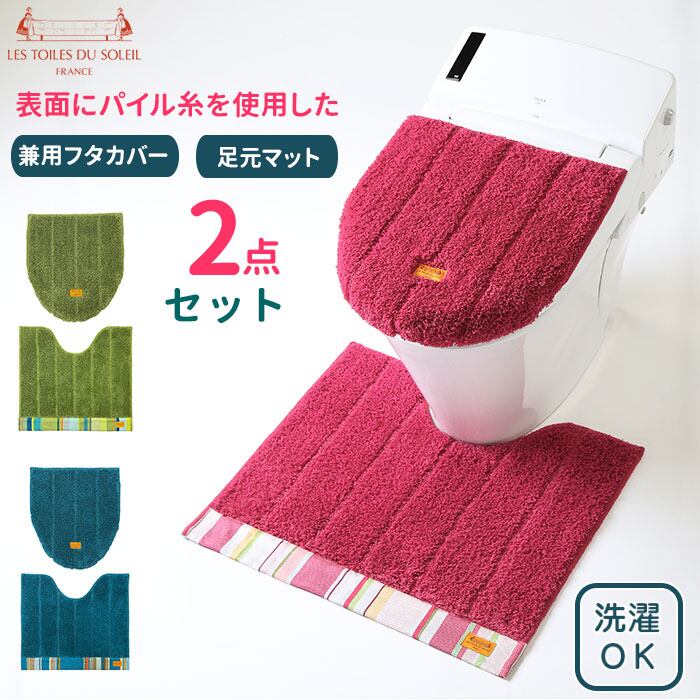 トイレマット セット おしゃれ 通販 トイレ2点セット 足元マット フタカバー 蓋 カバー トイレファブリック 新築祝い ギフト お手入れ簡単 洗える 洗濯 シンプル ストライプ フランス YOKOZUNA ヨコズナ LES TOILES DU S