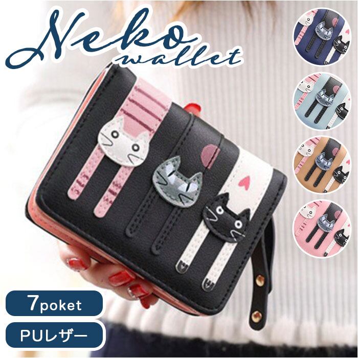財布 レディース 二つ折り かわいい 通販 二つ折り財布 二つ折りサイフ さいふ サイフ 折り財布 折財布 ラウンドファスナー 小銭入れ コインケース 定期入れ パスケース ID カード ケース おしゃれ 可愛い 女性 女子 女の子 中学生 高校生 小学生 ネコ 猫 ねこ 立体モチーフ