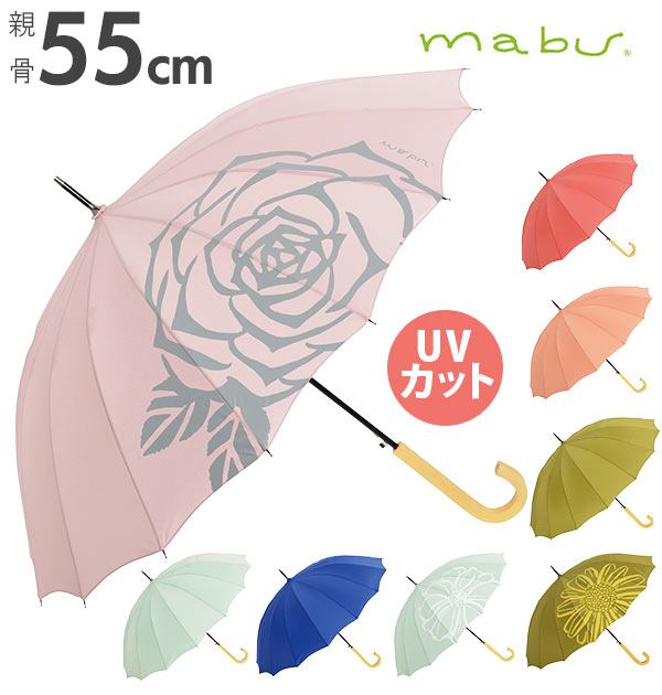 ジャンプ傘 16本骨 55cm mabu マブ 通販 ベーシックジャンプ16 レディース メンズ 軽量 軽い 長傘 雨傘 ジャンプ ワンタッチ UVカット 紫外線対策 日傘 晴雨兼用 グラスファイバー骨 丈夫 スリム 細身 無地 シンプル おしゃれ かわいい 花柄 フラワー 傘 かさ カサ 雨具