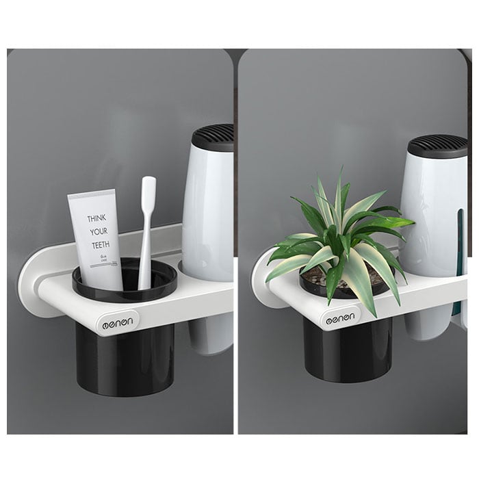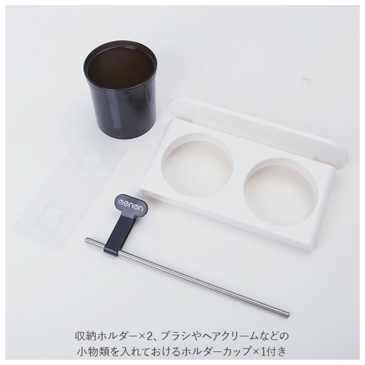 ・収納ホルダーを2つ装備しており、直径約7.5cm以内のドライヤーに対応。ブラシやヘアクリームなどの小物類を入れておけるホルダーカップ×1付き。