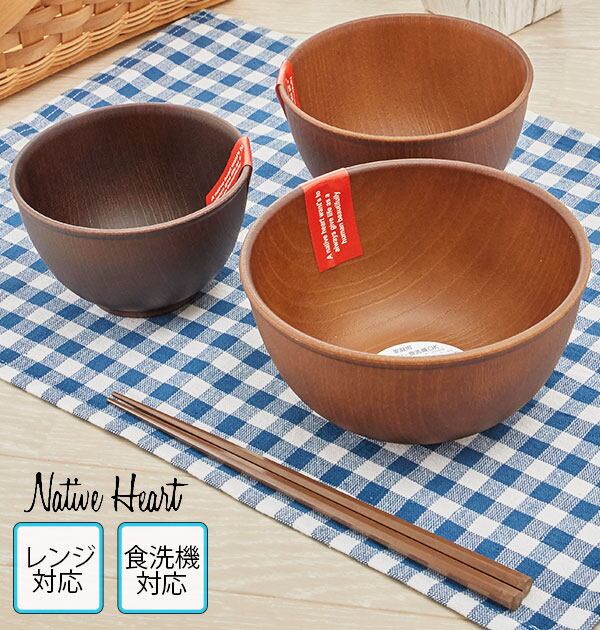 木目ボウル S M L NATIVE HEART home ネイティブハートホーム 通販 おしゃれ かわいい 木目調 木製風 ウッド調 合成漆器 カフェランチ 電子レンジ対応 食洗機対応 サラダボウル サラダボール スープボウル おわん お椀 汁椀 深鉢 丼 カフェ風ボウル カフェ風 お皿