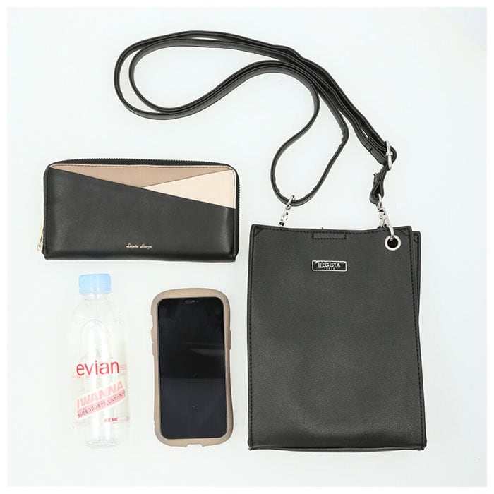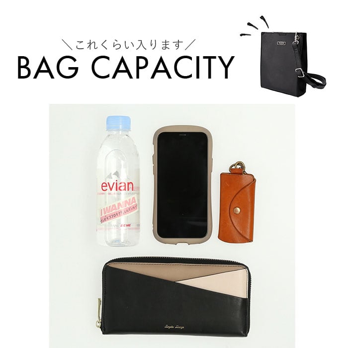 ・マチの薄いスタイリッシュなフォルムで、スマホや長財布、ミニウォーターボトルなど普段使いの小物がミニマルに収まるサイズ感。
