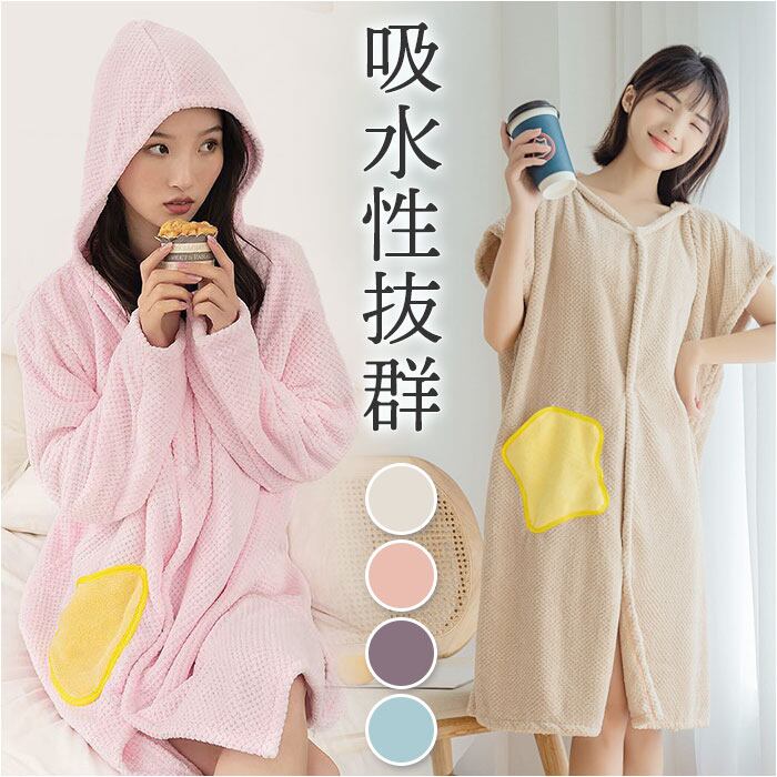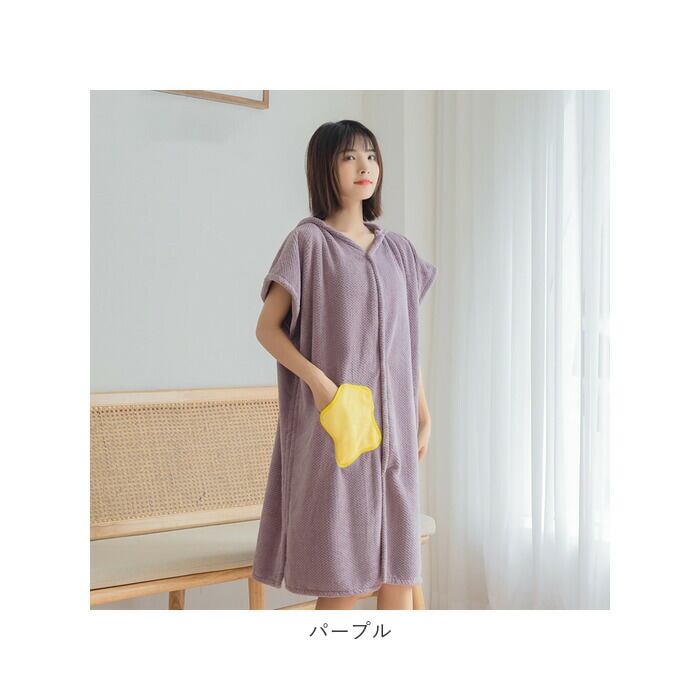 ・フードも付いており、サッと被るだけで髪の毛の水分も吸水し、ドライヤー時間を短縮。