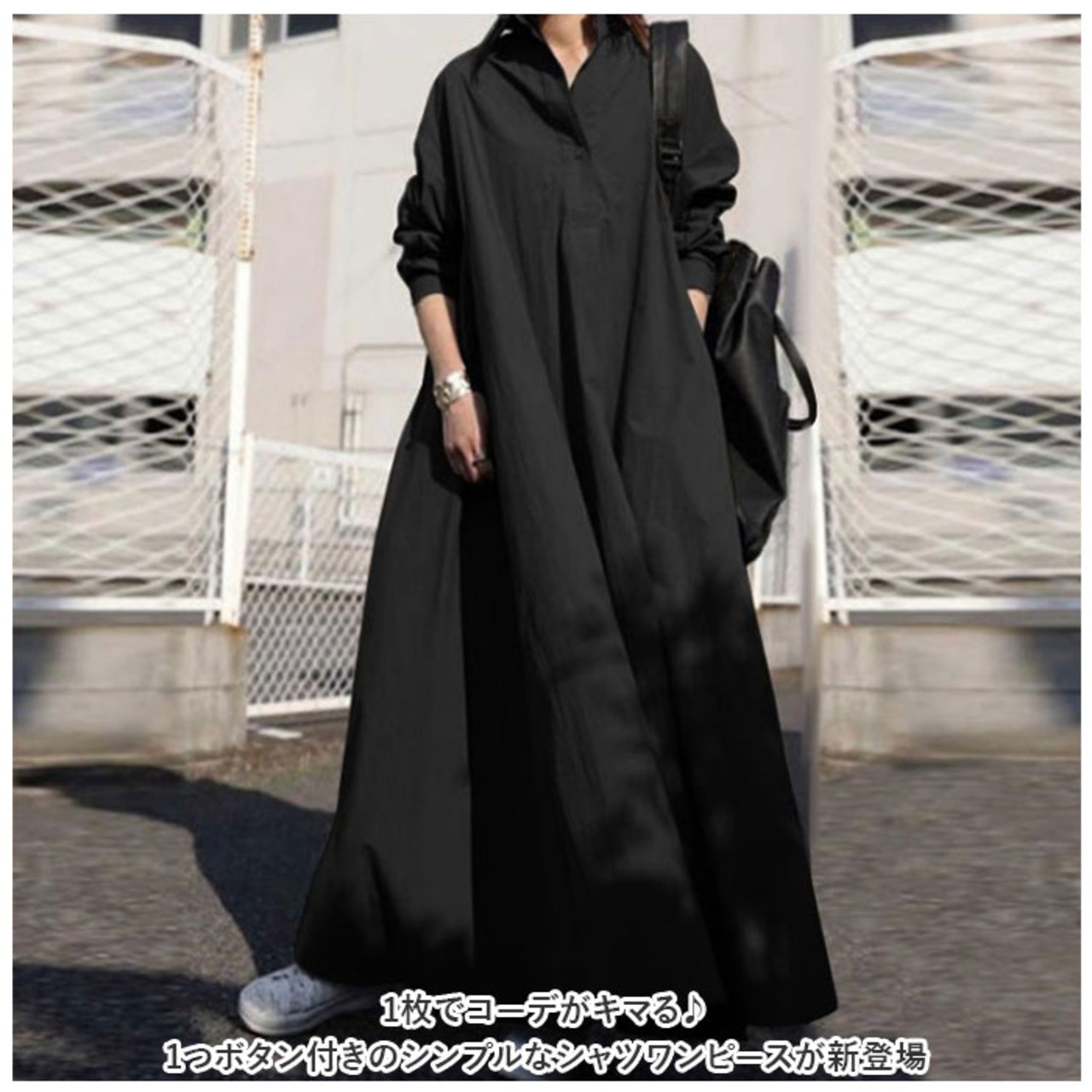 ・1枚でコーデがキマる♪1つボタン付きのシンプルなシャツワンピースが新登場。