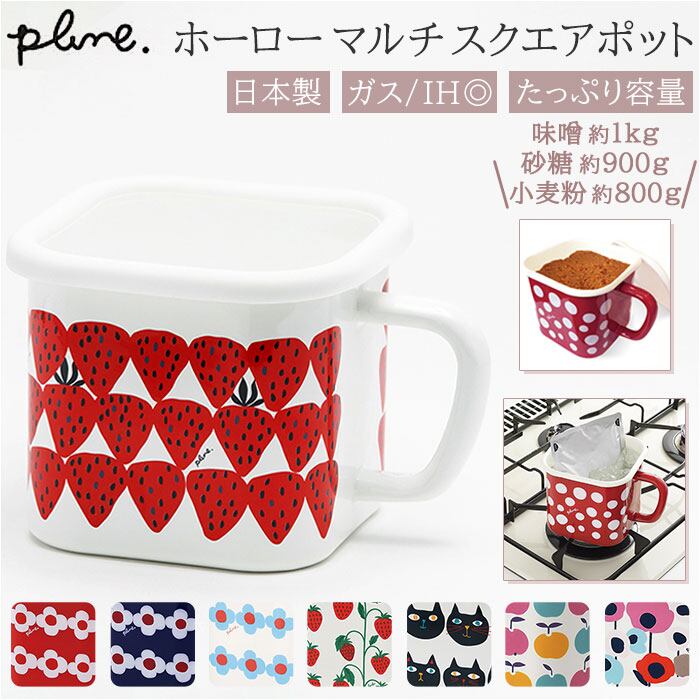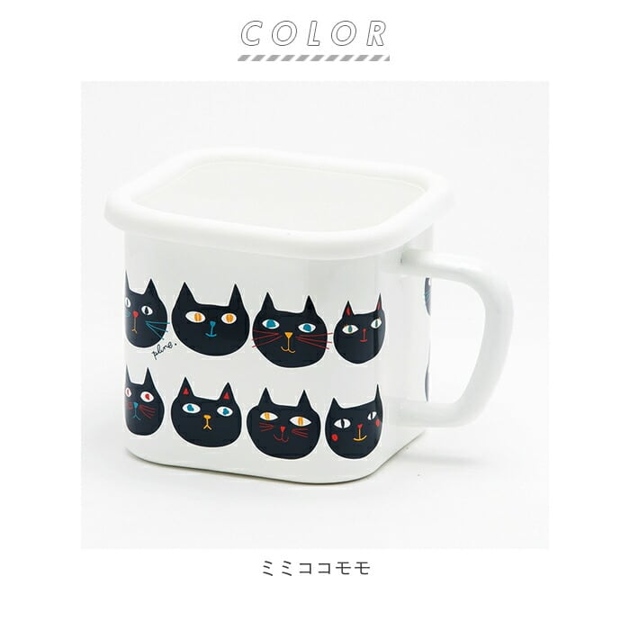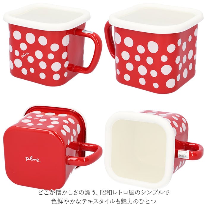 ・角が丸みを帯びた、ふんわり可愛らしいスクエア型のフォルム。ホーローならではの柔らかな質感に、パッと花が咲いたような鮮やかな色彩が印象的なデザイン。