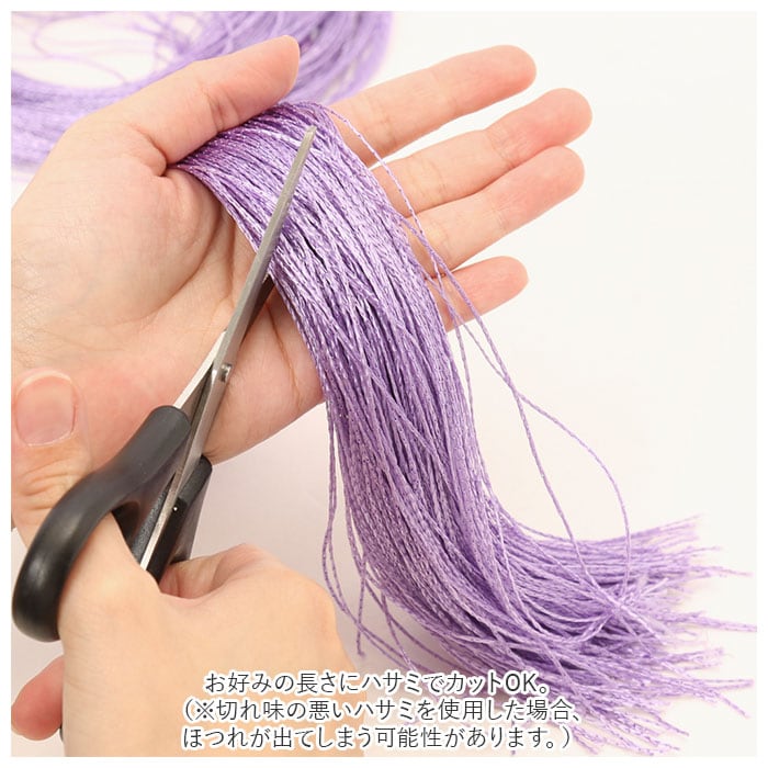 ・お好みの長さにハサミでカットOK。(※切れ味の悪いハサミを使用した場合、ほつれが出てしまう可能性があります。)