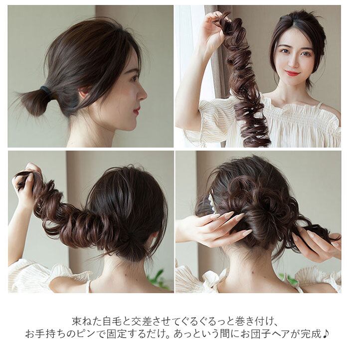 ・ウィッグ毛にはカールがかかっているので、ボリュームのあるお団子ヘアに♪シニヨンスタイルにもおすすめ。