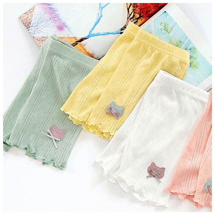 ・裾部分はクシュっとフリルのようなデザイン。裾元に縫い付けられたリボン付きクマちゃんワッペンも、可愛さアップのポイント♪