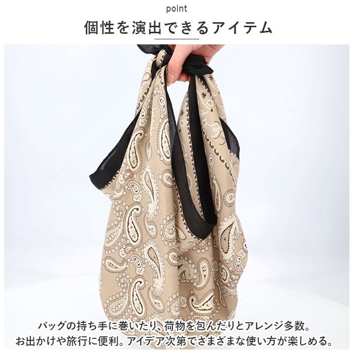 ・バッグの持ち手に巻いたり、荷物を包んだりとアレンジ多数。お出かけや旅行に便利。アイデア次第でさまざまな使い方が楽しめる。個性を演出できるアイテム。