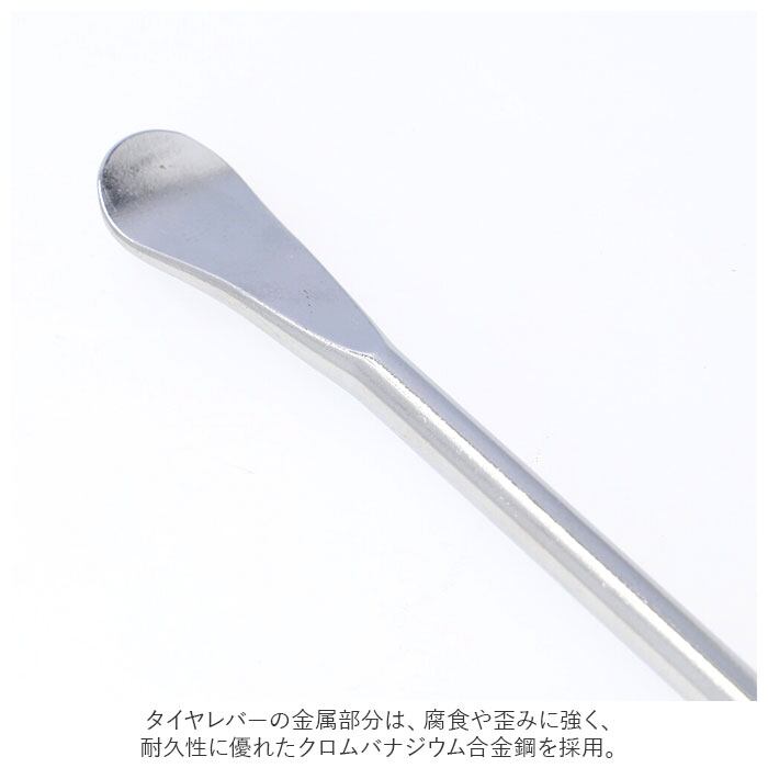 ・タイヤレバーの金属部分は、腐食や歪みに強く、耐久性に優れたクロムバナジウム合金鋼を採用。