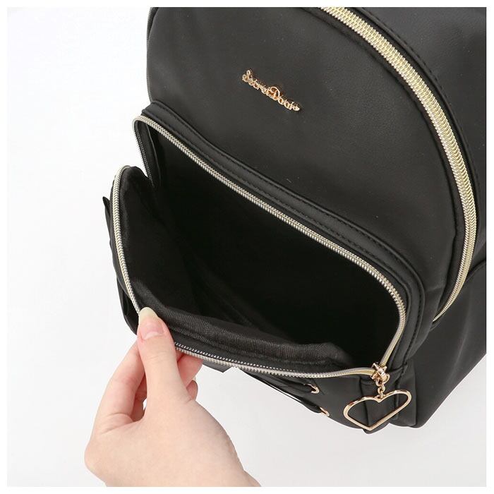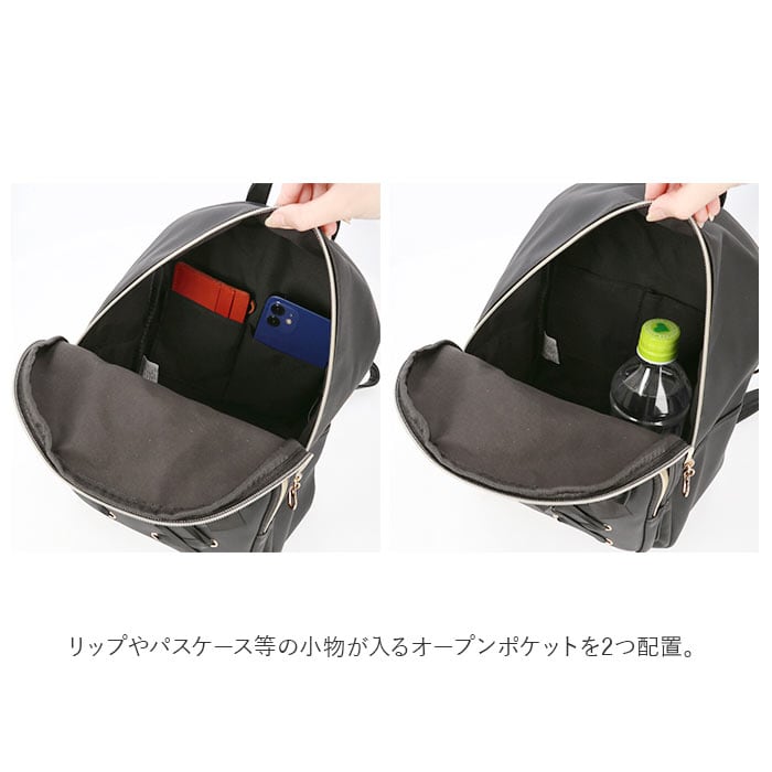 ・リップやパスケース等の小物が入るオープンポケットを2つ配置。