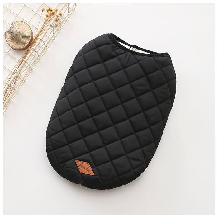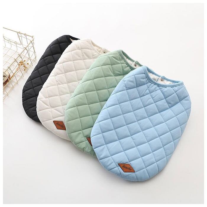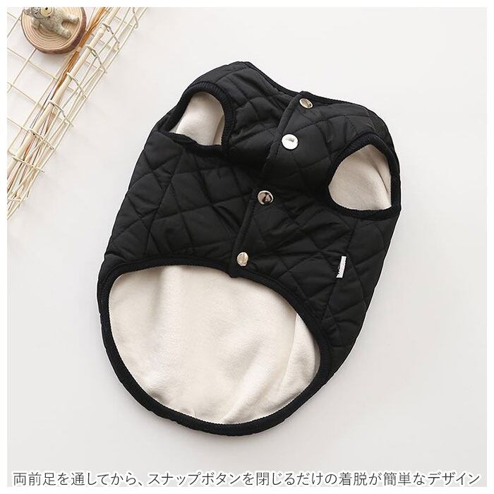 ・内側は肌触りのよいコットン素材、表生地はふんわり厚手のキルティング素材で仕上げた、ワンちゃん用のあったかベスト。