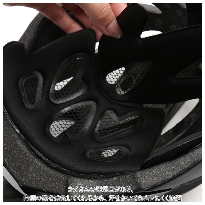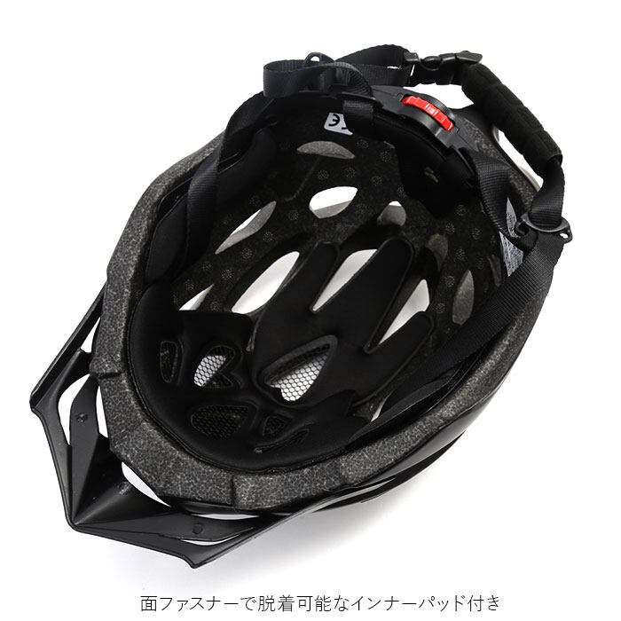 ・後頭部から前頭部につながる部分と両サイドには、面ファスナーで脱着可能なインナーパッド付き。(※後頭部から前頭部のパッドは一部メッシュ仕様になっております。)