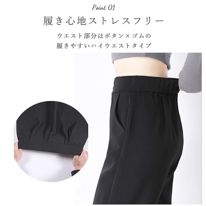 ・ウエスト部分はボタン×ゴムの履きやすいハイウエストタイプ。