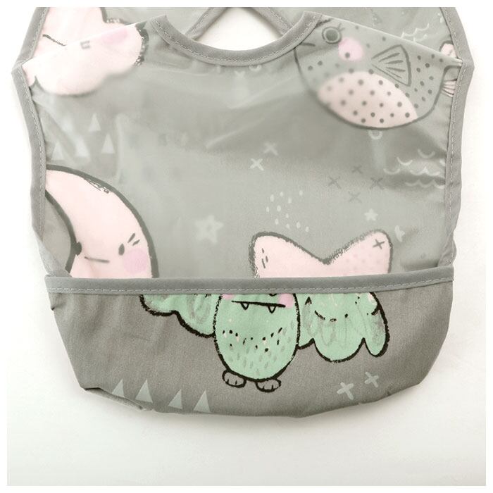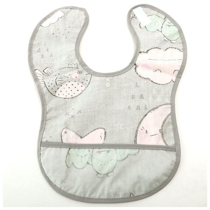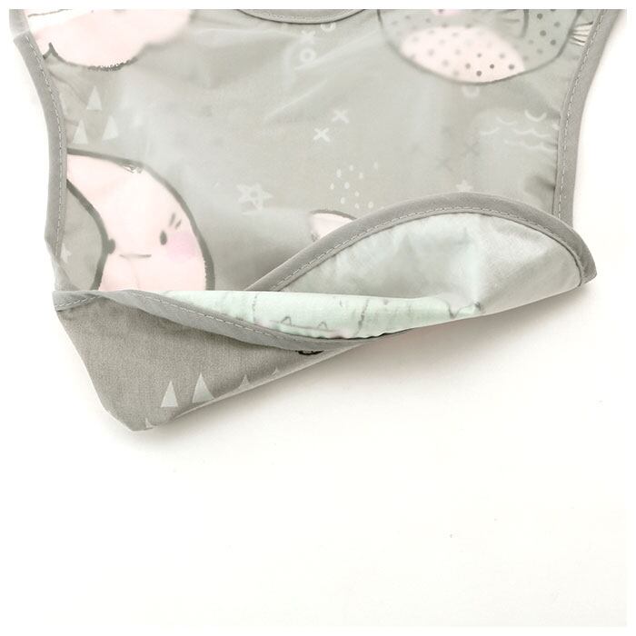 ・前裾部分を折り返すことでポケットが完成。もし赤ちゃんが食べこぼしてしまっても、床を汚す心配もなく安心。