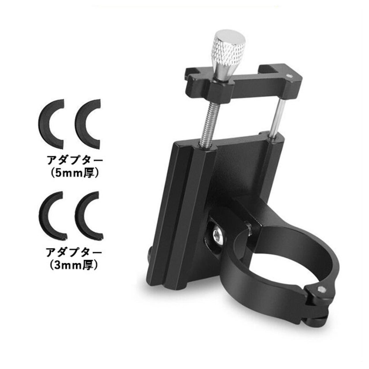 ・リング状のハンドル取付けマウントに調整アダプターを組み合わせることで、パイプ外周最小:約6cm〜最大:約10cmまでの自転車ハンドルに取り付けが可能。(アダプターは2種類付属、最大値はアダプターを使用しないで取り付けた際の値になります。)
