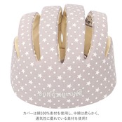 ・カバーは綿100%素材を使用し、中綿は柔らかく、通気性に優れている素材を使用!さらにヘルメットの内側のループに、付属のインナークッションを通すことで頭部を二重にガード!