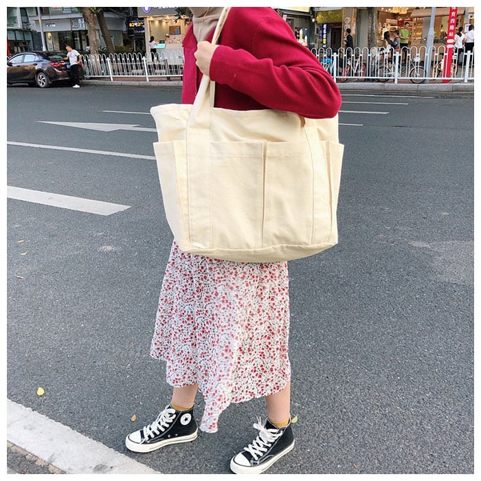 トートバッグ キャンバス 通販 ショルダーバッグ 手さげ 肩掛け バッグ 無地 キャンバス生地 ファスナー付き 縦型 帆布 大容量 a4 b5 レディース メンズ ガジェットバッグ 通学 大きめ