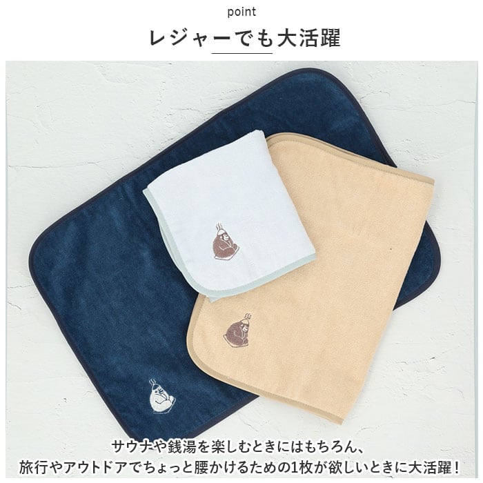 ・サウナや銭湯を楽しむときにはもちろん、旅行やアウトドアでちょっと腰かけるための1枚が欲しいときに大活躍!