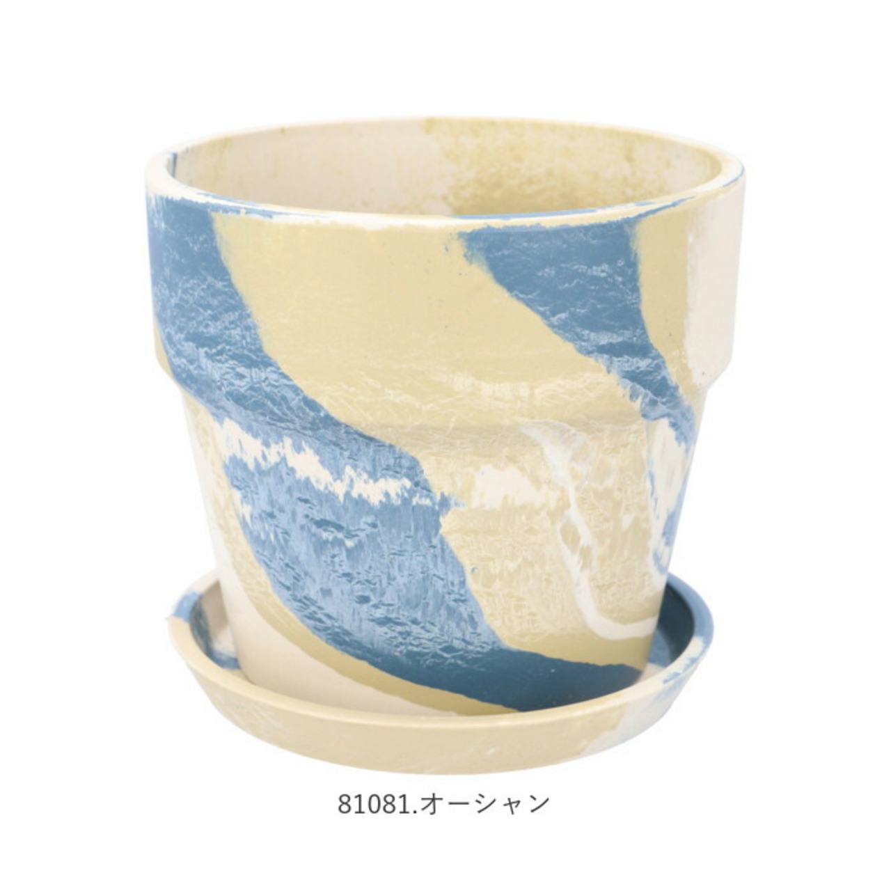 ・絵の具を流し込んだような、アーティスティックなマーブル模様がお部屋のアクセントに!アーバンプランツポット・マーブルソリッド(4号サイズ)。