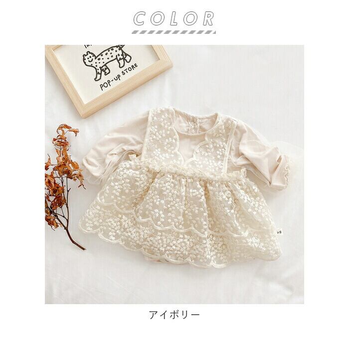 ・レース使いと繊細な刺繍デザインが可愛い♪ベビーレースドレス。