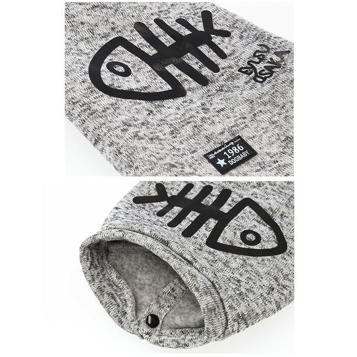・サカナの骨をかたどったユニークなモチーフと、「1986 DOGBABY」のフェイクレザータグがデザインのワンポイント。