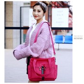 ・バッグの表面にはマグネットボタンで留められるポケット×2、チャーム付きのファスナー式ポケット×2・背面にも大き目なファスナーポケット×1を装備。