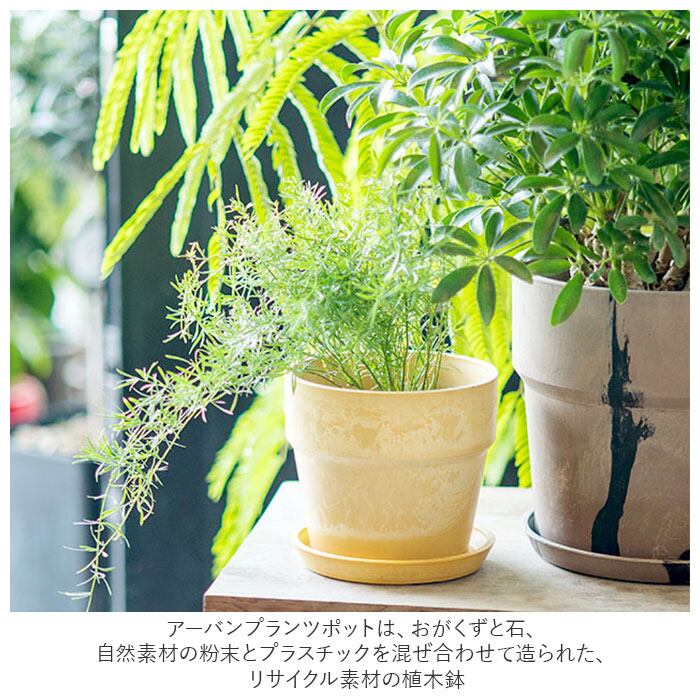 ・アーバンプランツポットは、おがくずと石、自然素材の粉末とプラスチックを混ぜ合わせて造られた、リサイクル素材の植木鉢。