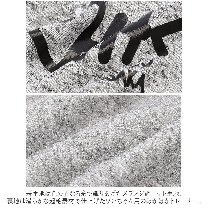 ・表生地は色の異なる糸で織りあげたメランジ調ニット生地、裏地は滑らかな起毛素材で仕上げたワンちゃん用のぽかぽかトレーナー。
