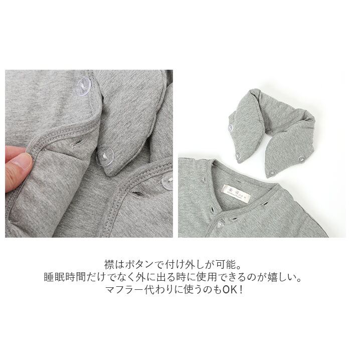 ・襟はボタンで付け外しが可能。睡眠時間だけでなく外に出る時に使用できるのが嬉しい。