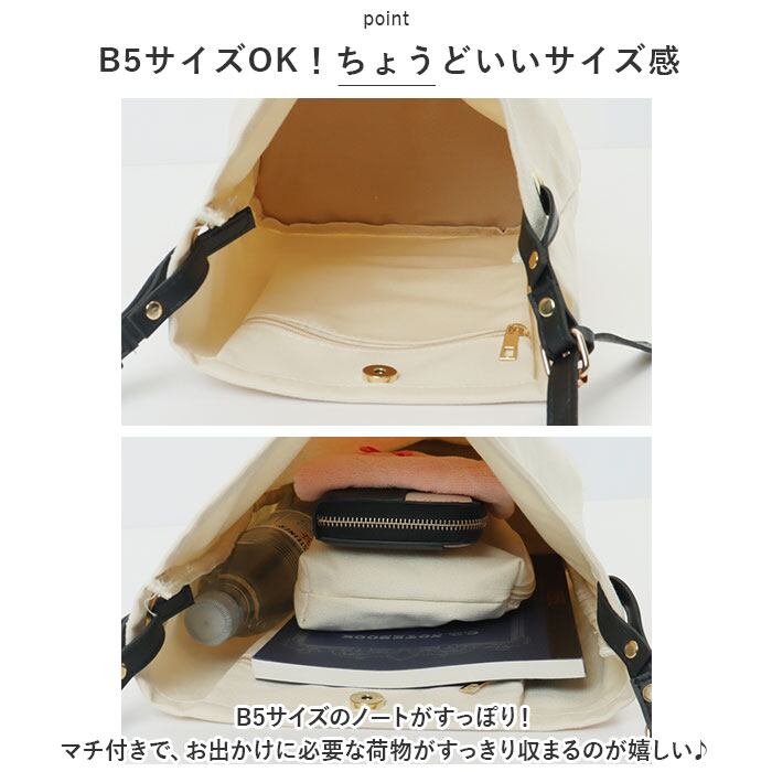 ・B5サイズのノートがすっぽり!マチ付きで、お出かけに必要な荷物がすっきり収まるのが嬉しい♪