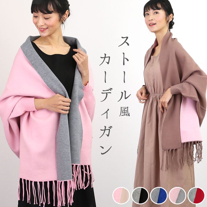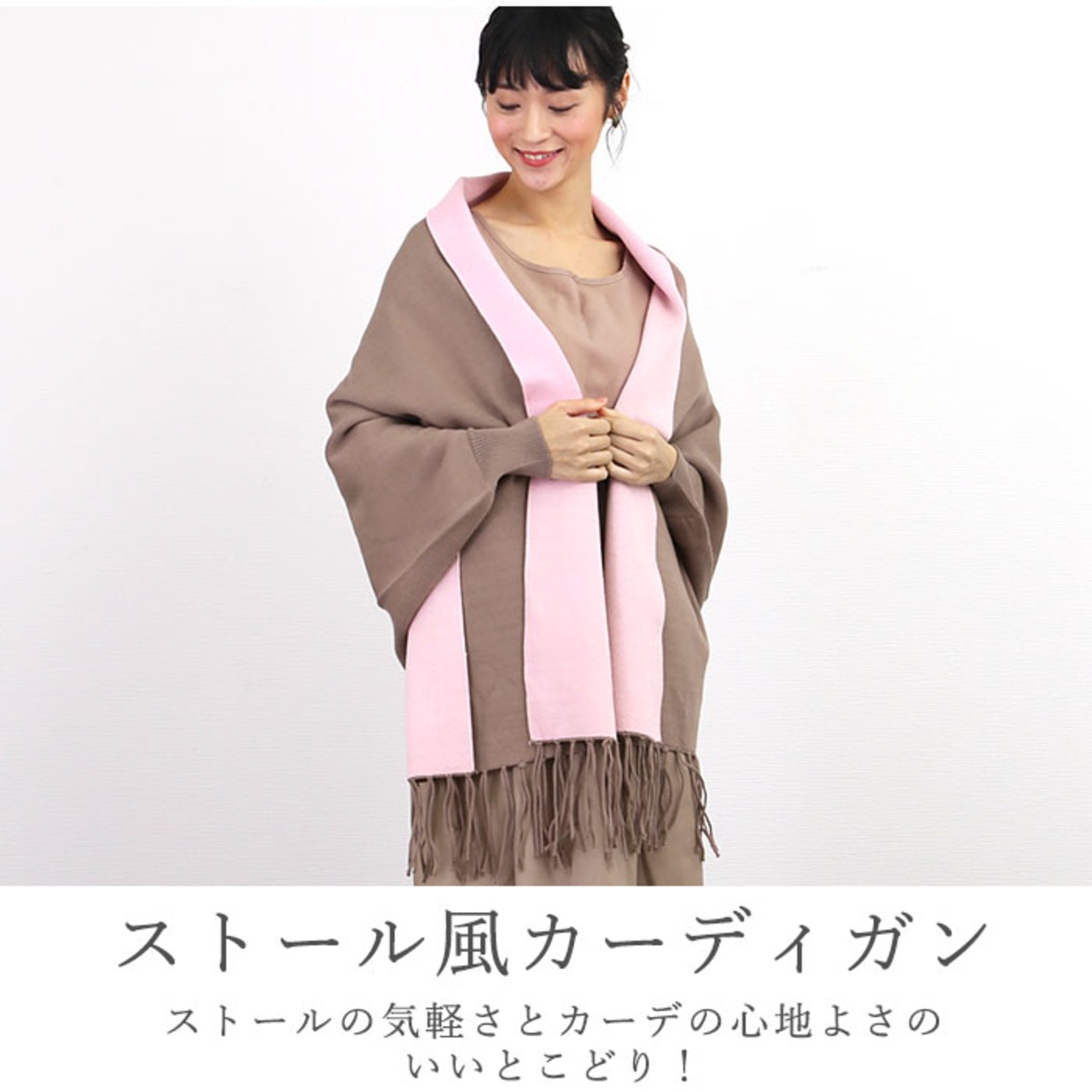 ・もうズレ落ち気にならない♪肌寒い季節にふんわりと羽織れる、袖付きあったかストールカーディガン。