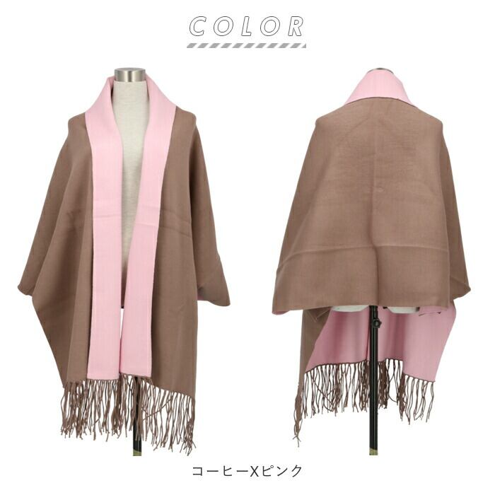 ・表地と裏地でカラーを切り替えたおしゃれなバイカラーのデザイン。ゆったり目に羽織ったり、裾が翻るたびに表情が変化して、ファッションに自分色をプラス出来る♪