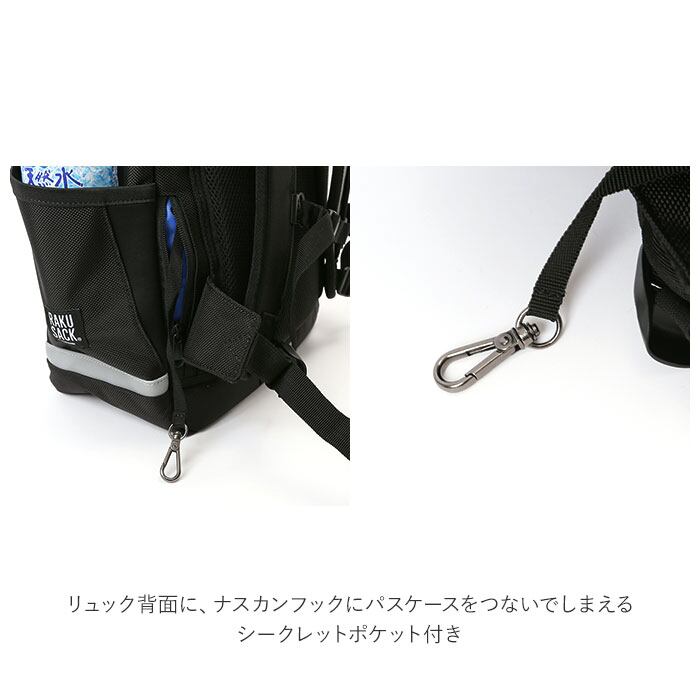 ・リュック内部に、クラスメイトのラクサックとの取り違えを防ぐネームタグに、キーケースがつなげるDカン付き。