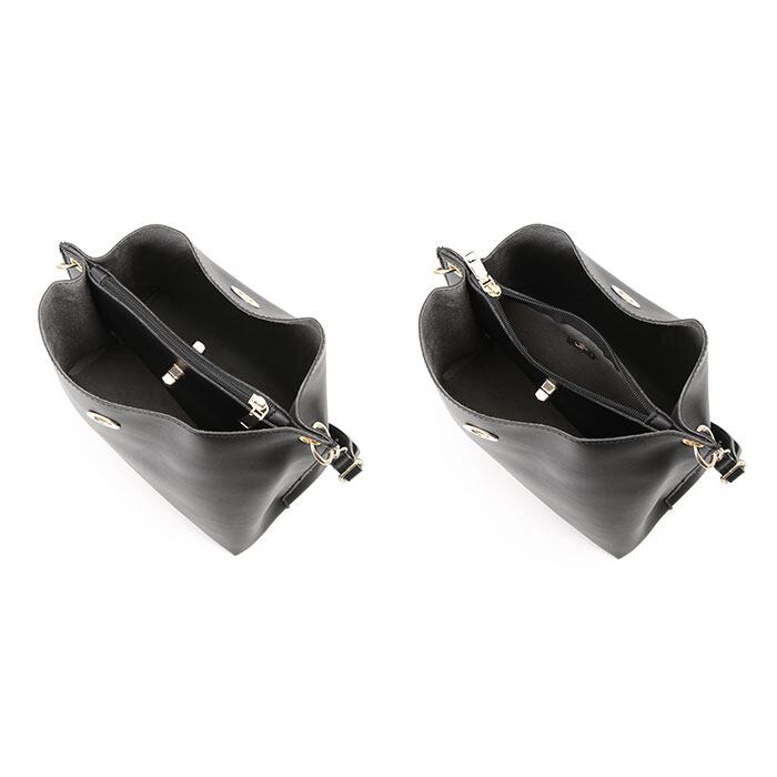 ※バッグ内中央のファスナー式のポケットは、内側に金具の取り付け部があり、手や物が引っかかりやすくなっておりますので十分にご注意の上ご使用下さい。