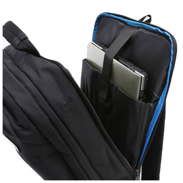 ・内側収納部分もラウンドファスナーで、PCやタブレットが収納できるクッションが付いていて安心。(パソコンは縦260mm×横440mm×厚み40mmサイズまで収納可能)