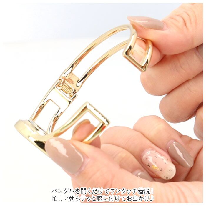 ・バングルを開くだけでワンタッチ着脱!忙しい朝もサッと腕に付けてお出かけ♪