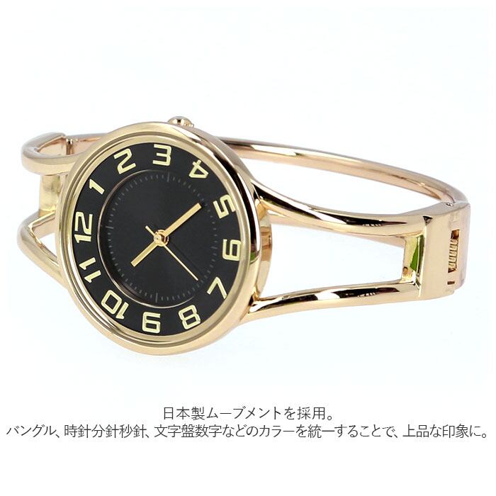 ・バングル、時針分針秒針、文字盤数字などのカラーを統一することで、上品な印象に。