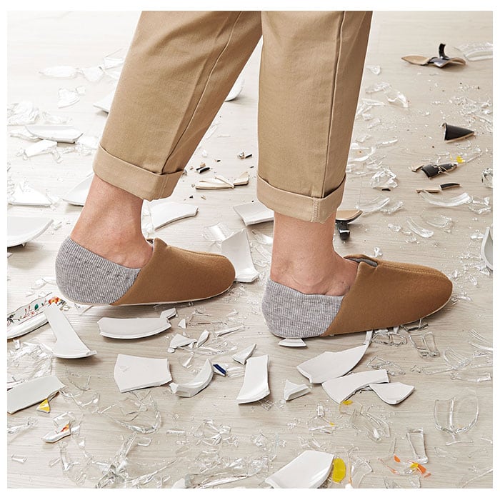 ・災害や震災時に飛び散ったガラス片から足を守る防災スリッパ「足まもりっぱ」が発売。(※室内履き専用)
