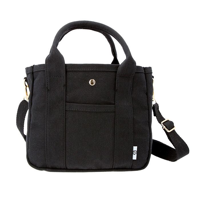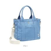 ・柔らかいコットン(帆布)素材を使用した、スクエア型バッグ。手持ちではもちろん、付属のショルダーベルトを取り付けて、ショルダーバッグにもなる2way仕様◎