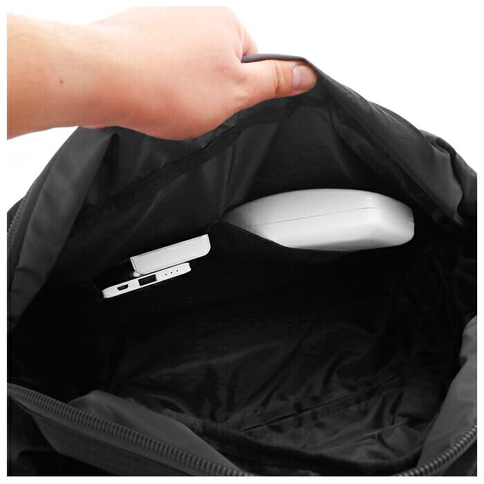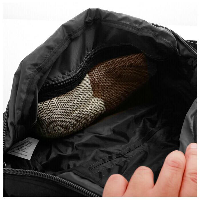 ・メイン開口部は便利なダブルファスナー。内側には、大きさの違うマチ付きオープンポケットが2つ、ファスナー付きネットポケットが1つあり、荷物の整理に便利!