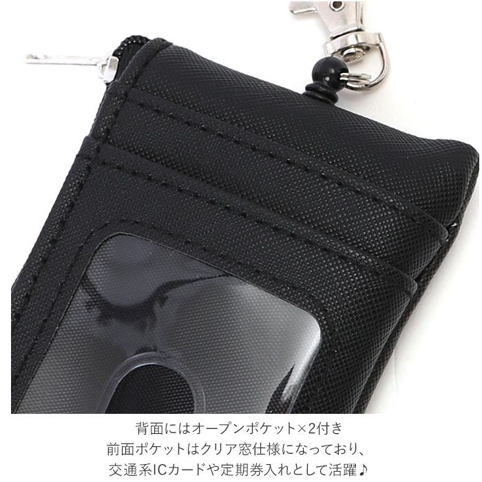 ・背面にはオープンポケット×2付き。前面ポケットはクリア窓仕様になっており、交通系ICカードや定期券入れとして活躍♪