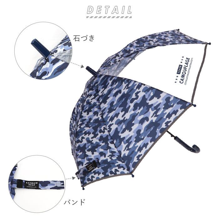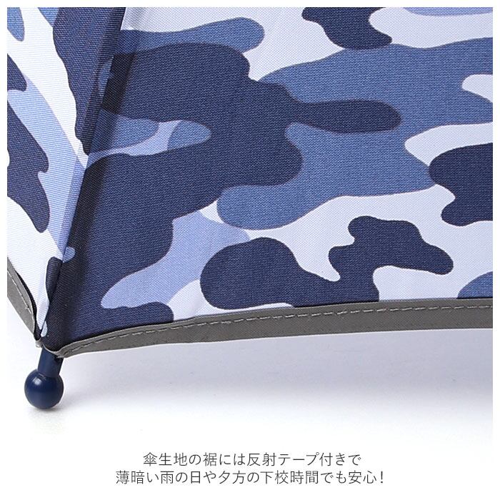 ・傘生地の裾には、車のライトをピカッと反射する反射テープ付き。薄暗い雨の日や夕方の下校時間でも安心!