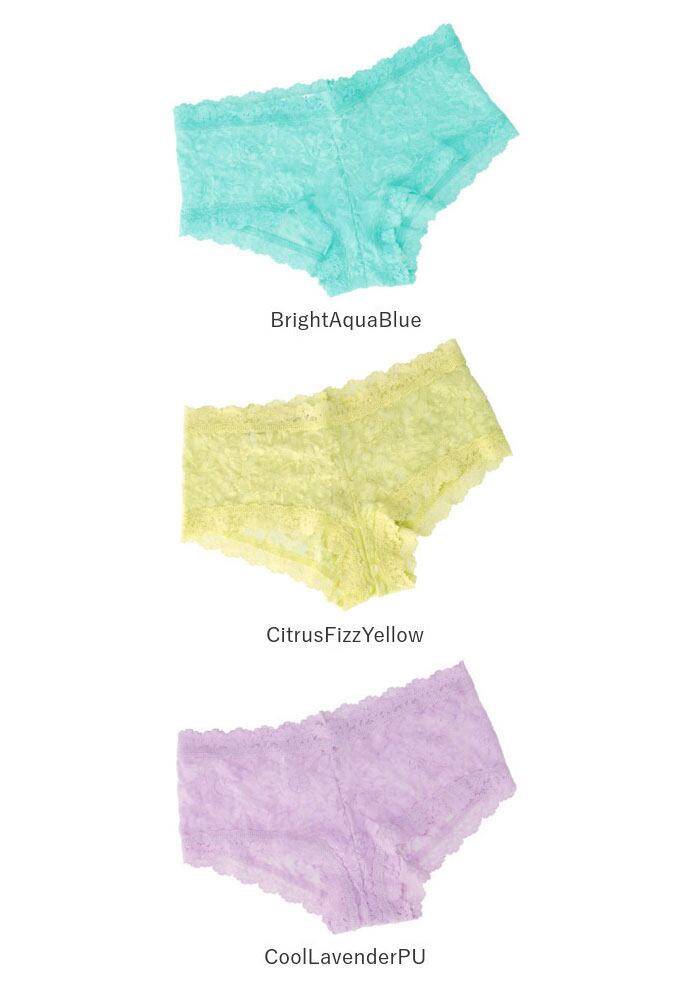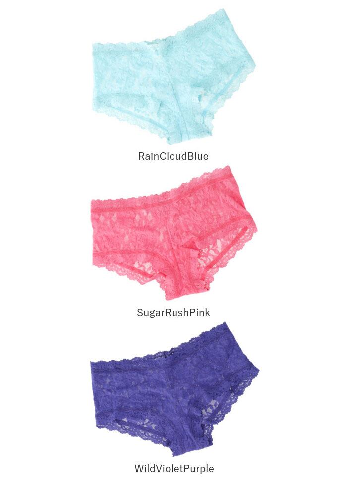 ・日本の下着にはない豊富なカラーバリエーションで、カラフルな印象が魅力の総レースのボーイズショーツ。