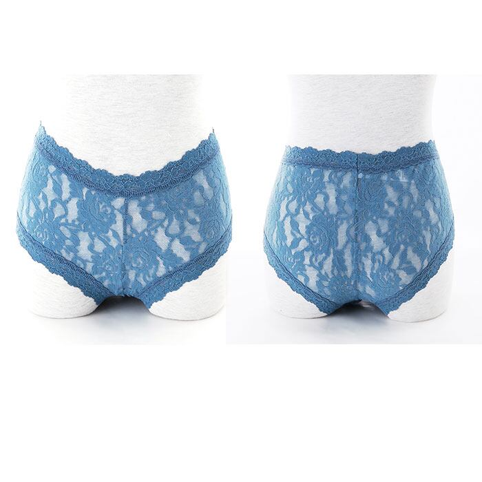 ・総レースでありながら柔らかく、よく伸び、ストレスのないフィット感でヒップを優しく包み込む。