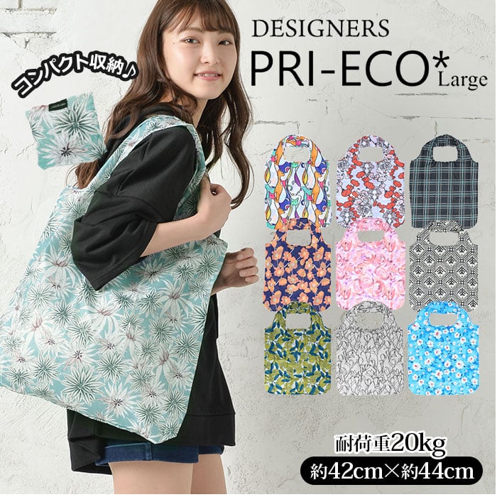 エコバッグ 弁当 通販 コンビニ レジ袋 トートバッグ型 軽量 軽い 大容量 おしゃれ かわいい 折りたたみ コンパクト お買い物バッグ ショッピングバッグ 旅行 通勤 通学 サブバッグ エコバック DESIGNERS PRI-ECO デザイナーズ プリエコ Large ラージ