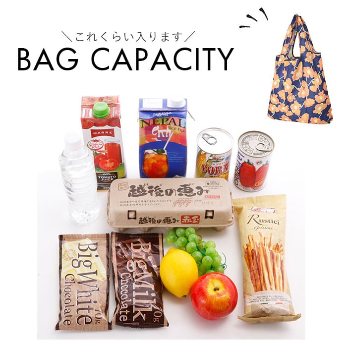 ・使わないときは小さく折りたたんで収納できる、持ち運びに便利な収納袋一体型のエコバッグ♪