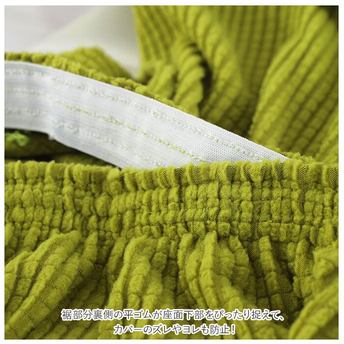 ・裾部分裏側の平ゴムが座面下部をぴったり捉えて、カバーのズレやヨレも防止!