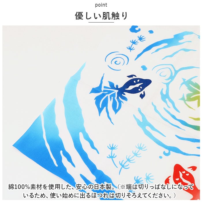 ・綿100%素材を使用した、安心の日本製。(※端は切りっぱなしになっているため、使い始めに出るほつれは切りそろえてください。)