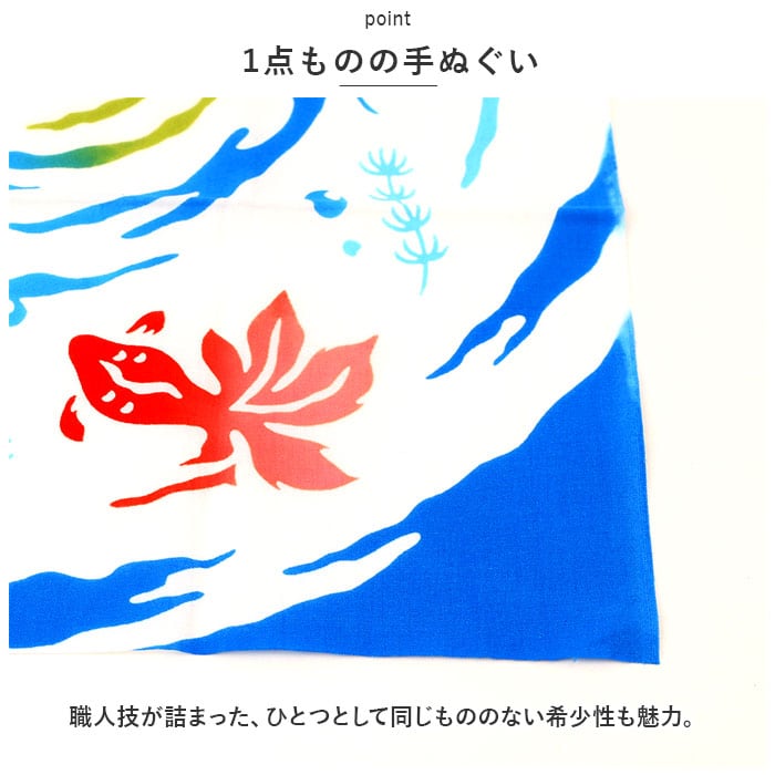 ・職人の手によって”注染”と呼ばれる技法で染められた手ぬぐい。使い込むほどに生地が柔らかく馴染み、独特の色合いと風合いが増していくのが特徴。